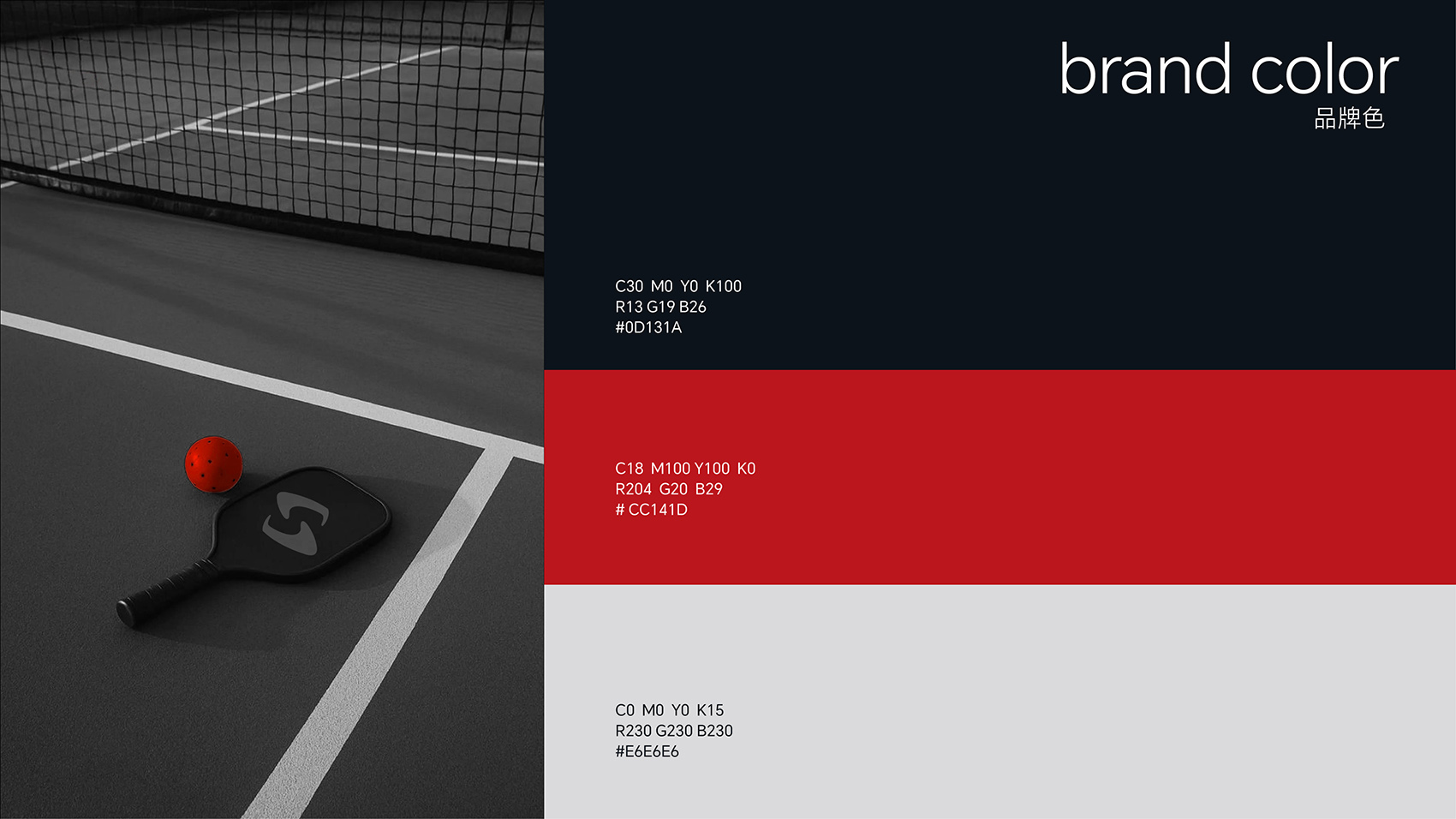 創意思路:VI 設計以紅黑為主色調,紅色傳遞匹克運動的激情與競技屬性,強化 “全球領先專業匹克球品牌” 定位;從品牌logo中提煉獨特品牌符號,傳遞速度與能量,品牌覆蓋裝備全場景,助力玩家識別品牌,沉淀資產、賦能品牌傳播。