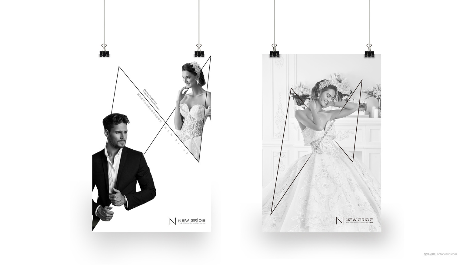 創意思路:新新娘品牌整體造型巧妙運用首音字母“N”作為創意元素,重點的核心表達愛的交集及結合新娘、新郎蝴蝶結婚慶元素。圖形采用更加簡潔現代的標識視覺語言,與國際主流設計接軌,充分展現具備國際視野的品牌形象。