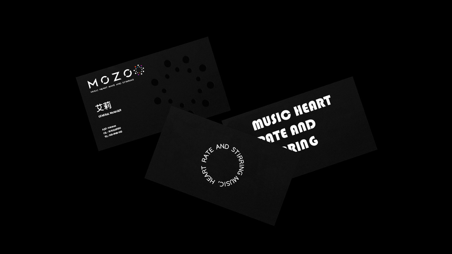 創(chuàng)意思路:MOZO音樂酒吧品牌整體造型設(shè)計以酒吧名稱為主進行字體設(shè)計,體現(xiàn)出國際化時尚、潮流的理念。圖形采用簡潔的音樂律動作為設(shè)計元素,形成獨特的視覺符號,與國際主流設(shè)計接軌,充分展現(xiàn)具備國際視野的品牌形象。