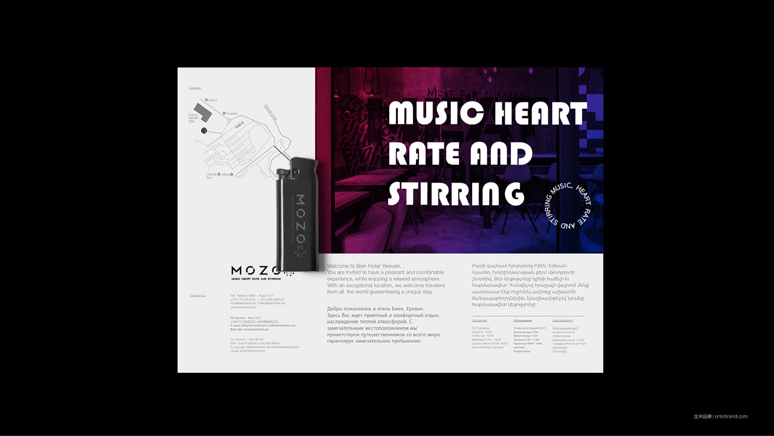 而干凈利落的字體則契合著當(dāng)下國際的流行趨勢,同時貼合MOZO酒吧國際化服務(wù)的特色。