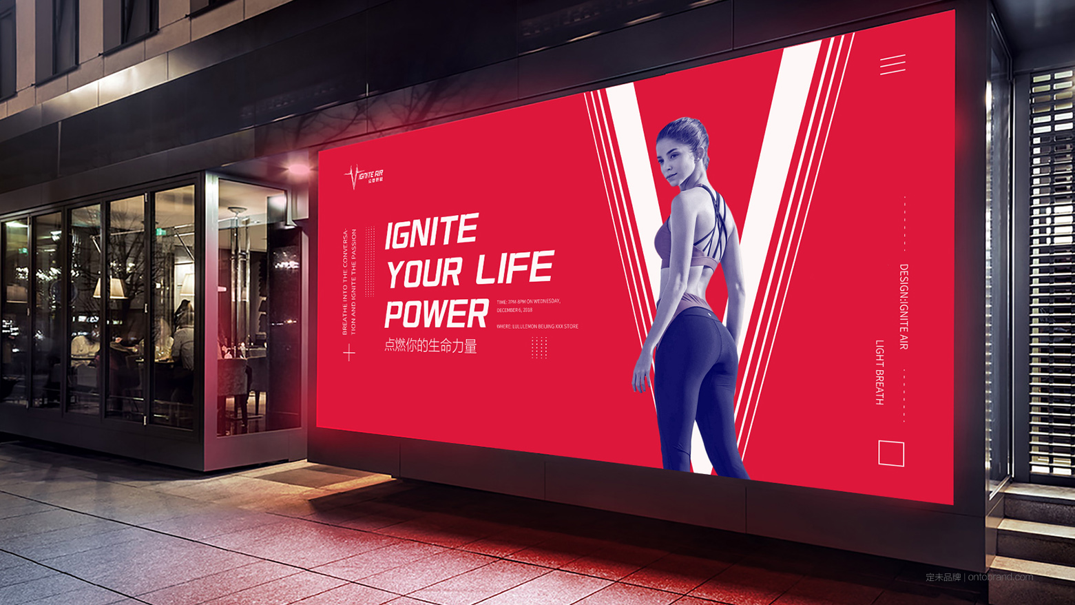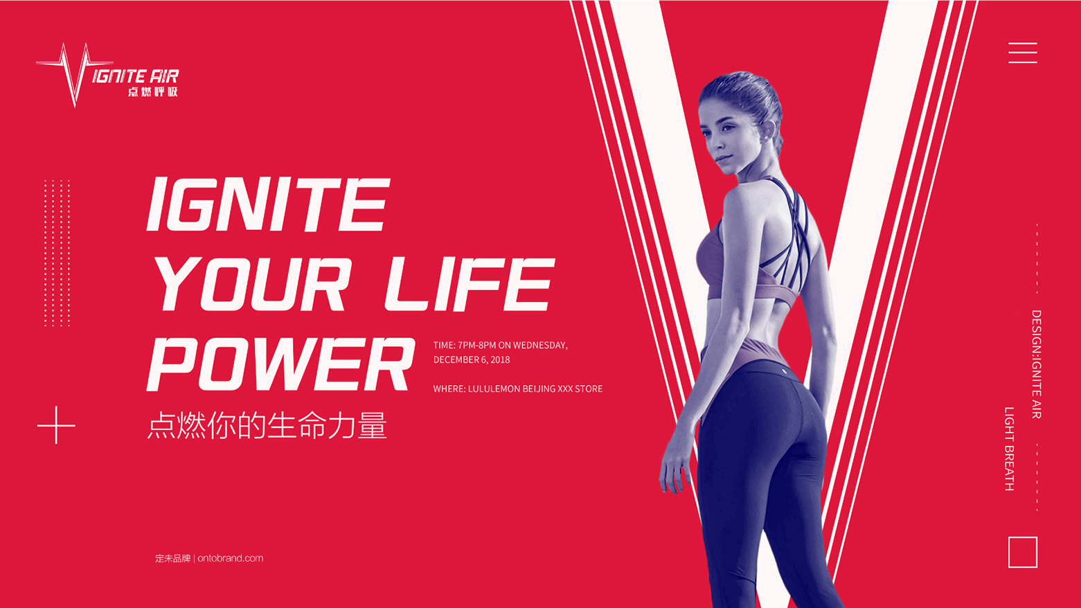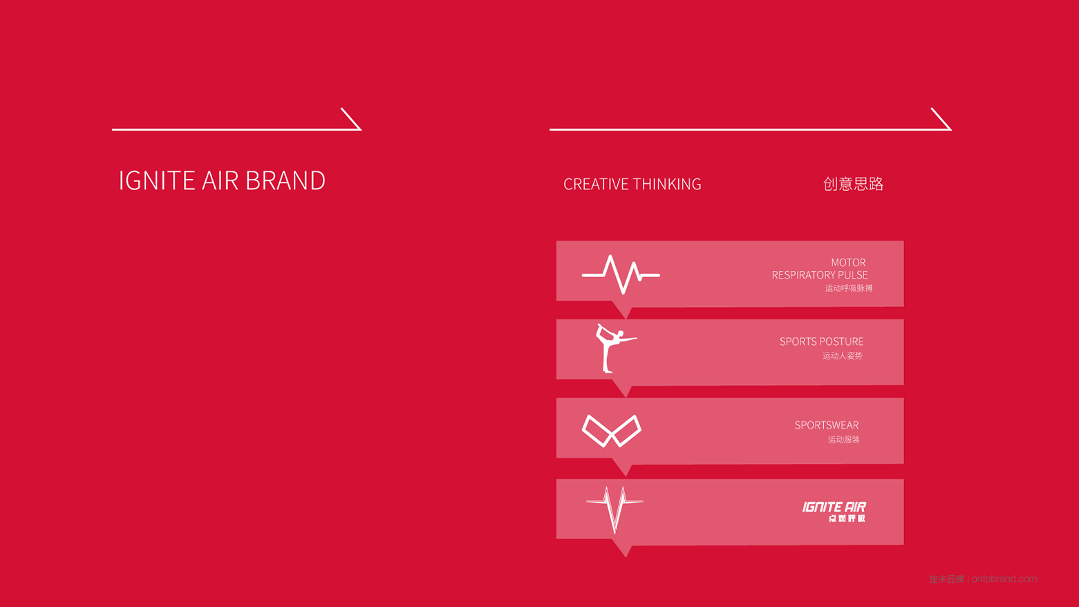 創意思路:品牌調性設計以跳動脈搏、瑜伽動作、服飾等抽象圖形作為創意核心點,體現脈動力量感、健康生命力的時尚運動理念;品牌色調以熱烈膨脹感的紅色系,從視覺及觸覺點燃你的生命力。