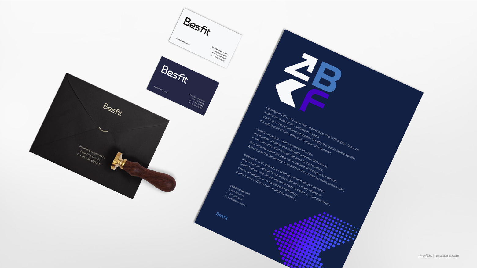 創意思路:上海博飛特原有陳舊的品牌形象已不符合當下品牌趨勢及對企業未來發展的需求,定未品牌為其重新梳理了品牌戰略,全新設計標識及視覺VI系統和宣傳物料。品牌核心聚焦于更為專業、簡潔、國際化的角度,品牌基調采用極簡及富有設計感的英文與具有機械特質的中文,睿智的科技藍,以展現企業精工智能、國際標準的發展戰略規劃。