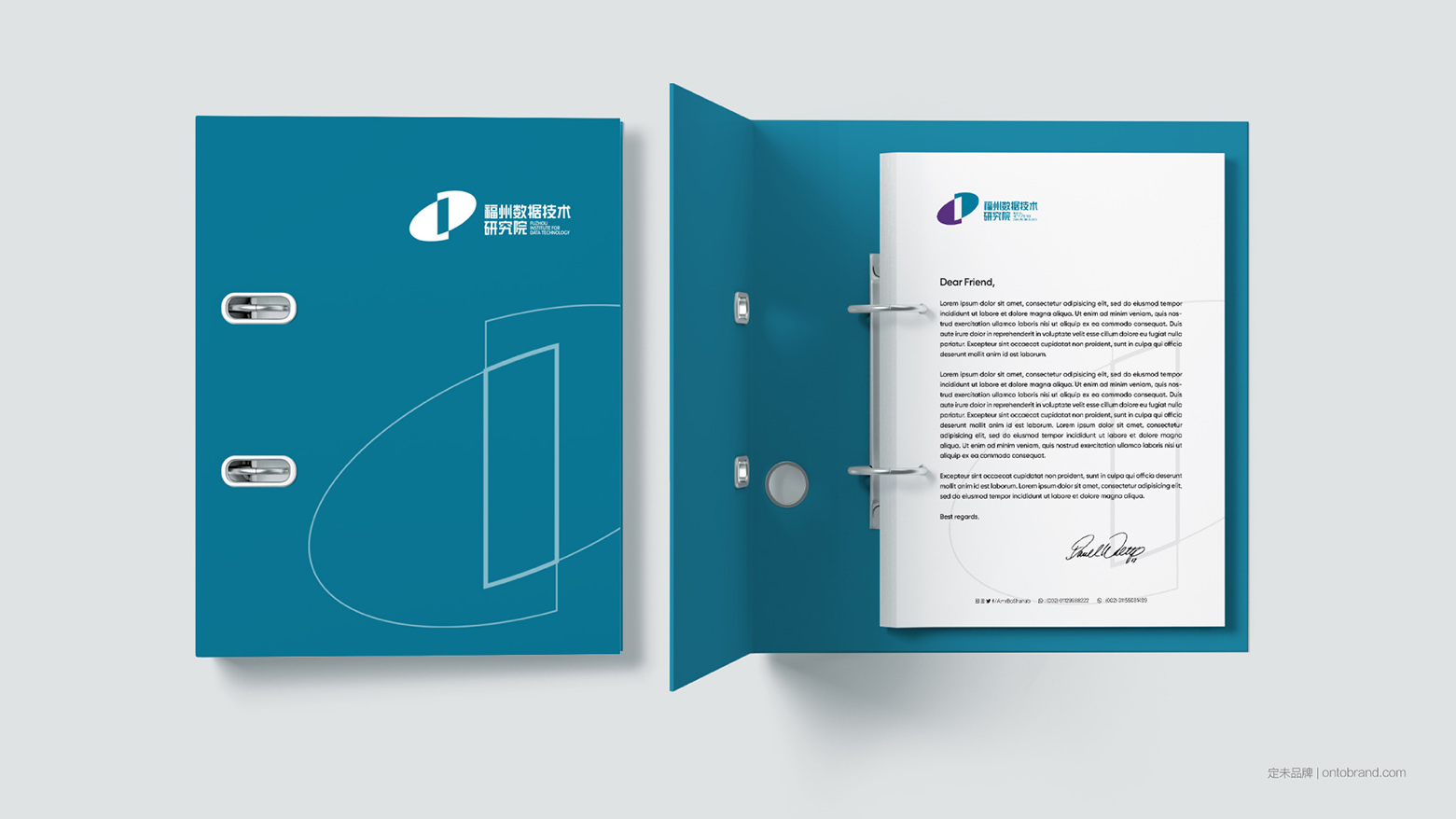 創意思路:品牌視覺整體形狀的創意來源于統計學中的數據餅狀圖。圖形由兩個對角對稱的“D”形圖案組合而成,“D”形圖案的創意取自數據“Data”的首字母,象征著大數據產業,表達了福州數據研究院的行業屬性。兩個“D”形圖案中間則是字母“I”,取自數據院“institute”的英文首字母。品牌視覺圖形的整體視覺風格簡約明了國際化,具備幾何圖形的對稱美與平衡美,在傳播中易識別記憶。字體設計風格為端莊沉穩,簡明干練,符合福州數據研究院國企的穩重氣質,同時表現出福州數據研究院作為科技企業嚴謹的科研氣質。