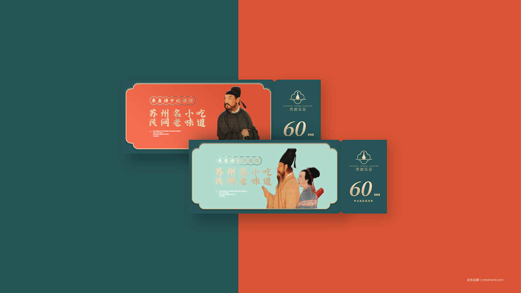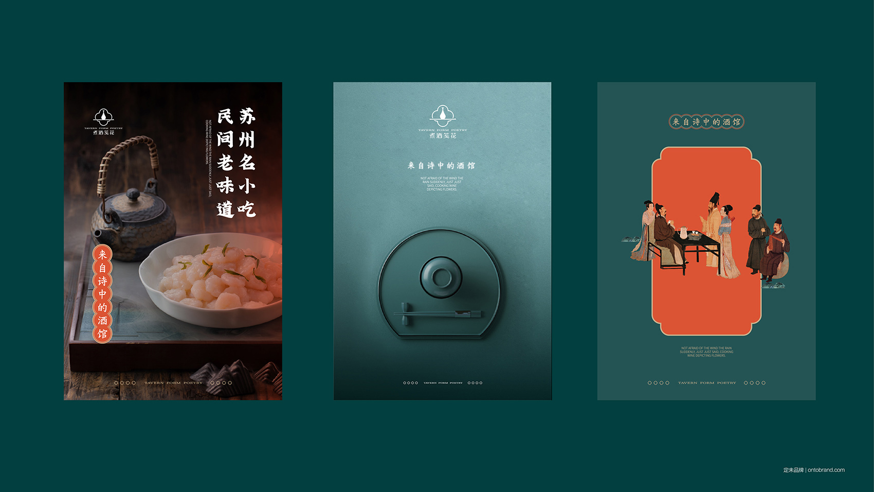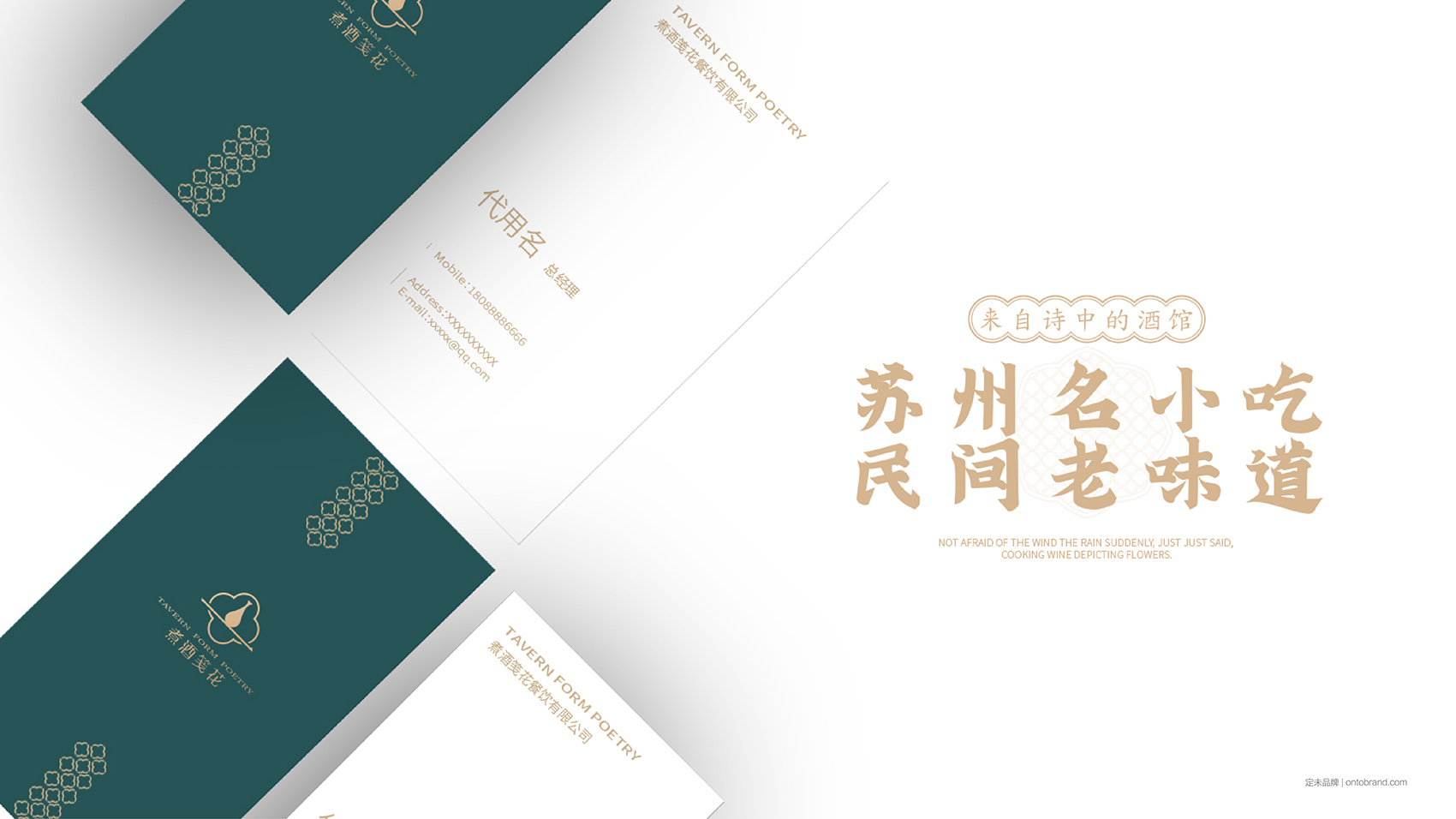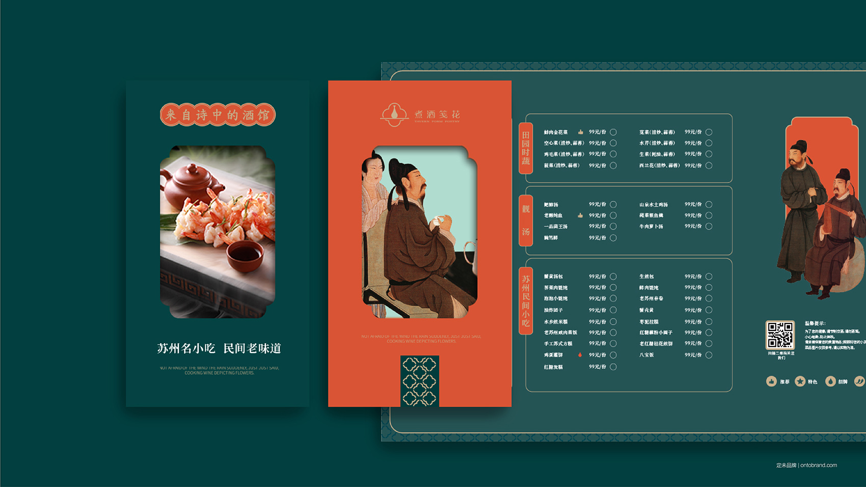 創(chuàng)意思路:【煮酒箋花】出自宋代李清照:不怕風(fēng)狂雨驟,恰才稱,煮酒箋花,不愿做風(fēng)流人物,獨(dú)作熏香、煮酒、品茶,看雨后殘花的那一人,怡然自得,這就是項(xiàng)目創(chuàng)始人的向食客傳達(dá)的雅致情懷。升級后的品牌調(diào)性更具內(nèi)涵,透過花窗,看到了江南古典園林,山水縈繞,亭榭樓閣,花木繁茂,更有觥籌交錯,今日良宴會,喧笑滿人間的穿越千年的夢境。