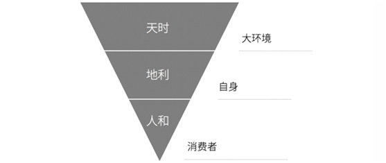 在做任何企業戰略時,都需要考慮天時(市場面對的大環境),不能逆天而行。地利(企業自身能力),我方是否有占據地勢優勢。人和(消費者需求),我們做出來的產品是否可得人心。