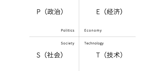 政治因素,有政治制度、政府政策、國家的產業政策、相關法律及法規等;經濟因素,有經濟發展水平、規模、增長率、政府收支、通貨膨脹率等;社會因素,有人口、價值觀念、道德水平等;技術因素,有高新技術、工藝技術和基礎研究的突破性進展。