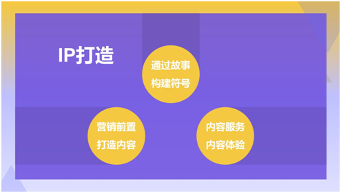 打造IP,需要具備三大IP思維——故事思維、營銷思維、互聯網思維。通過故事構建符號;營銷前置打造內容;注重內容服務與內容體驗。