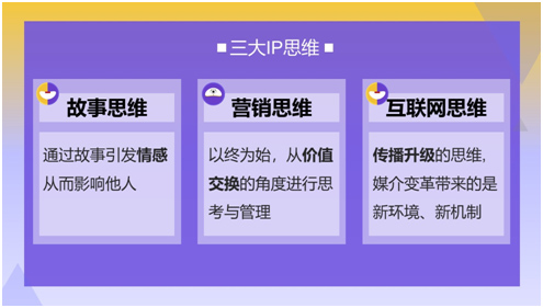 在IP打造過程中,要具備三大IP思維——故事思維、營銷思維、互聯網思維。