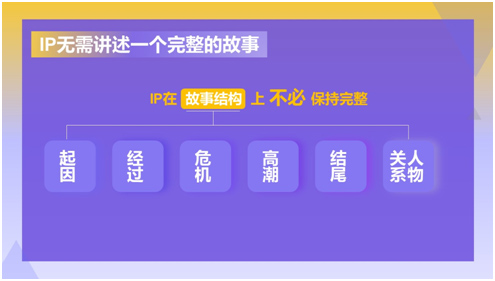 IP在故事結構上不必保持完整,但一定要具有故事性。