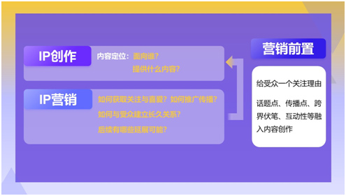 既然IP內容只有獲取流量才能完成商業閉環,則在內容創作之前就要考慮如何獲取受眾的關注與喜愛、如何進行傳播、如何與受眾建立長久關系、以及如何結合后續的延展場景;將話題點、傳播點、跨界伏筆、互動性等融入內容創作。即營銷前置做內容。