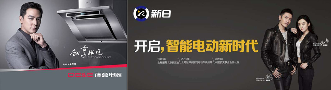 明星代言,以娛樂明星和體育明星為主,是用的最多最濫的代言方式。